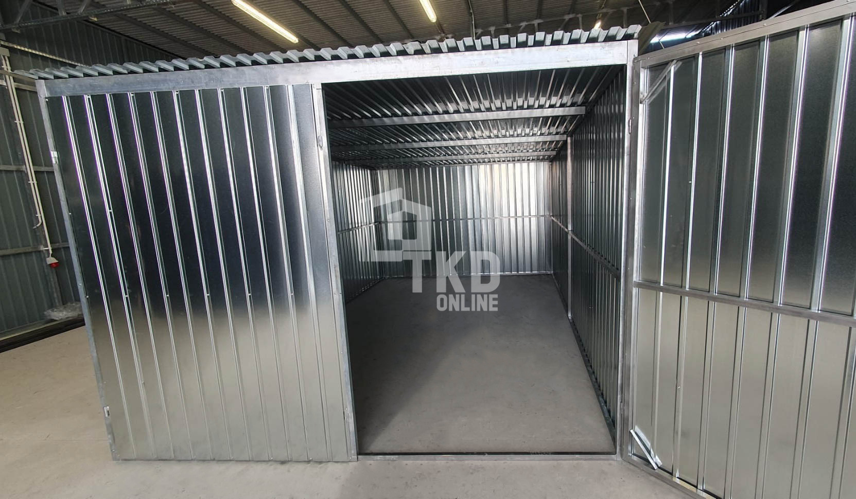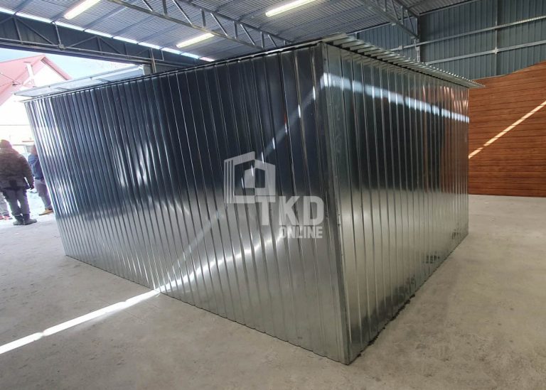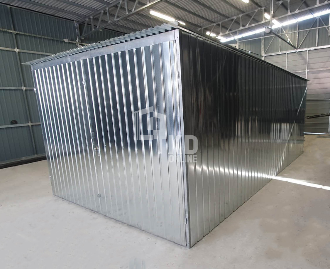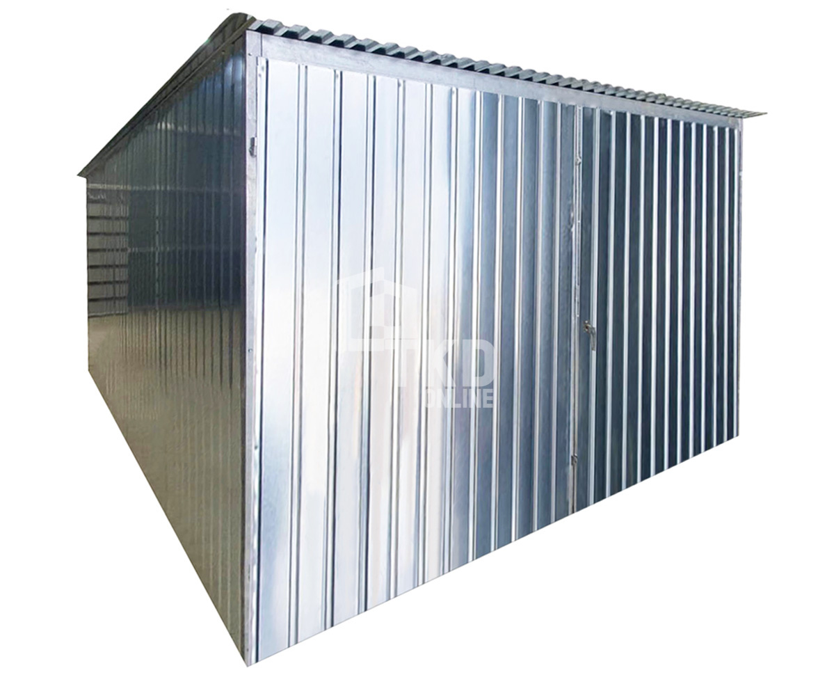 Garaż blaszany 3x5m – brama dwuskrzydłowa – ocynk – dach spad w tył TKD386