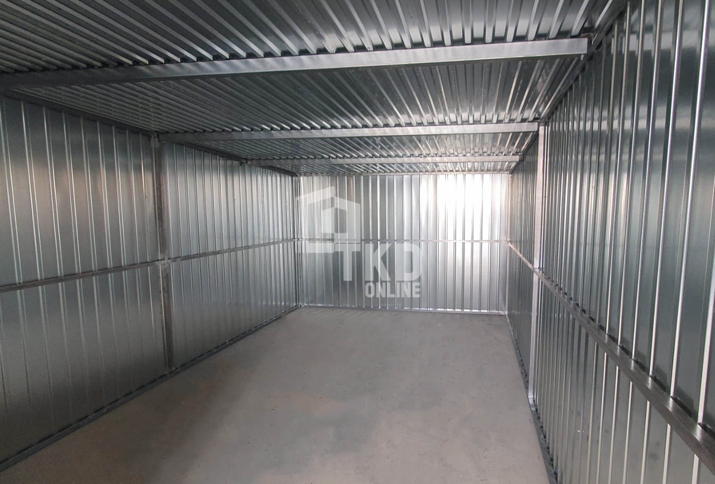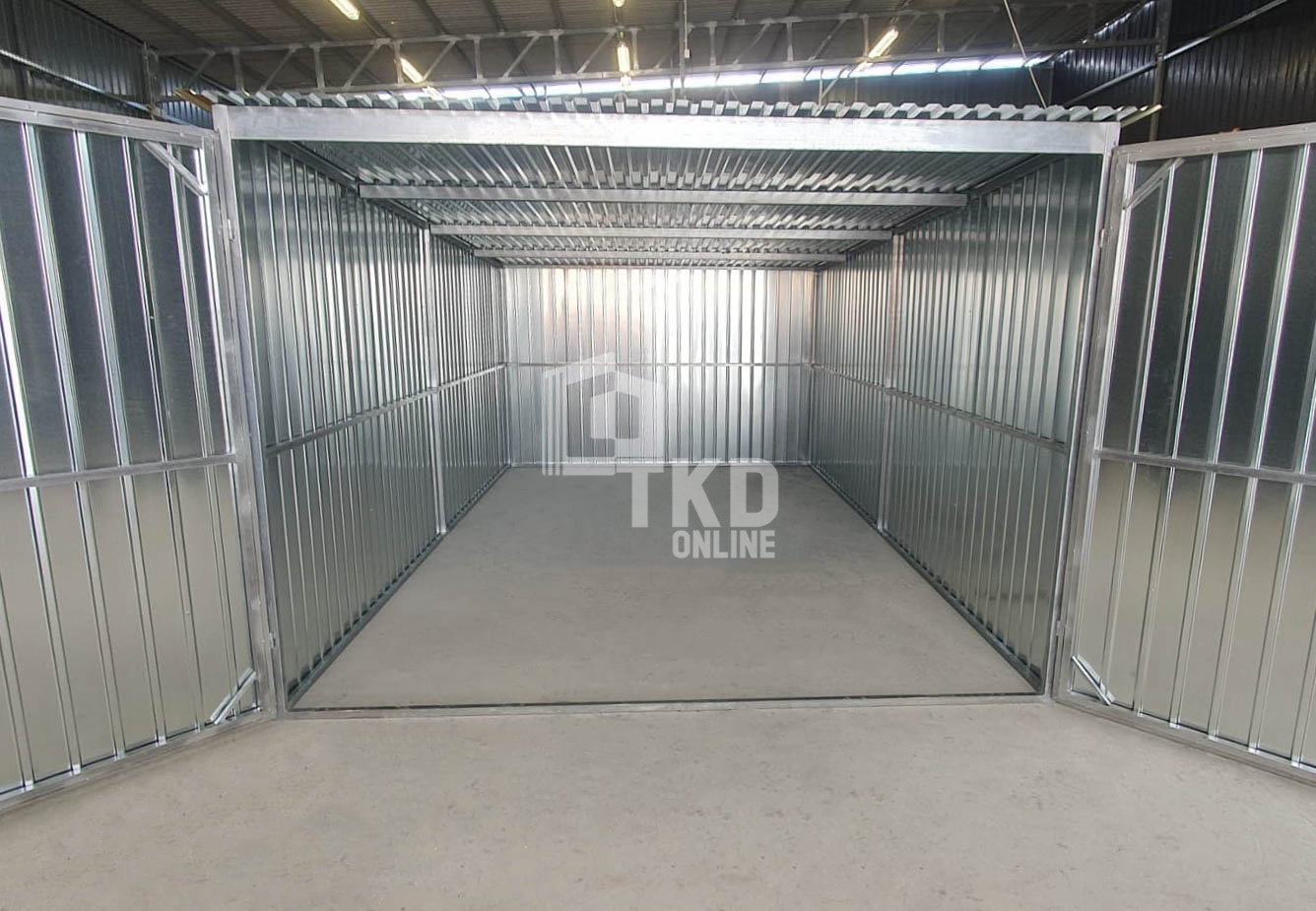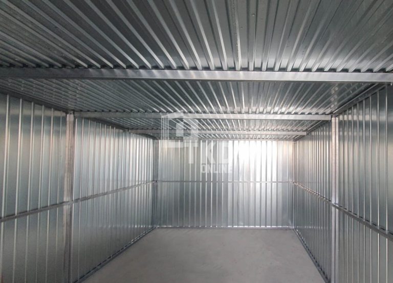 Garaż blaszany 3x5m – brama dwuskrzydłowa – ocynk – dach spad w tył TKD386
