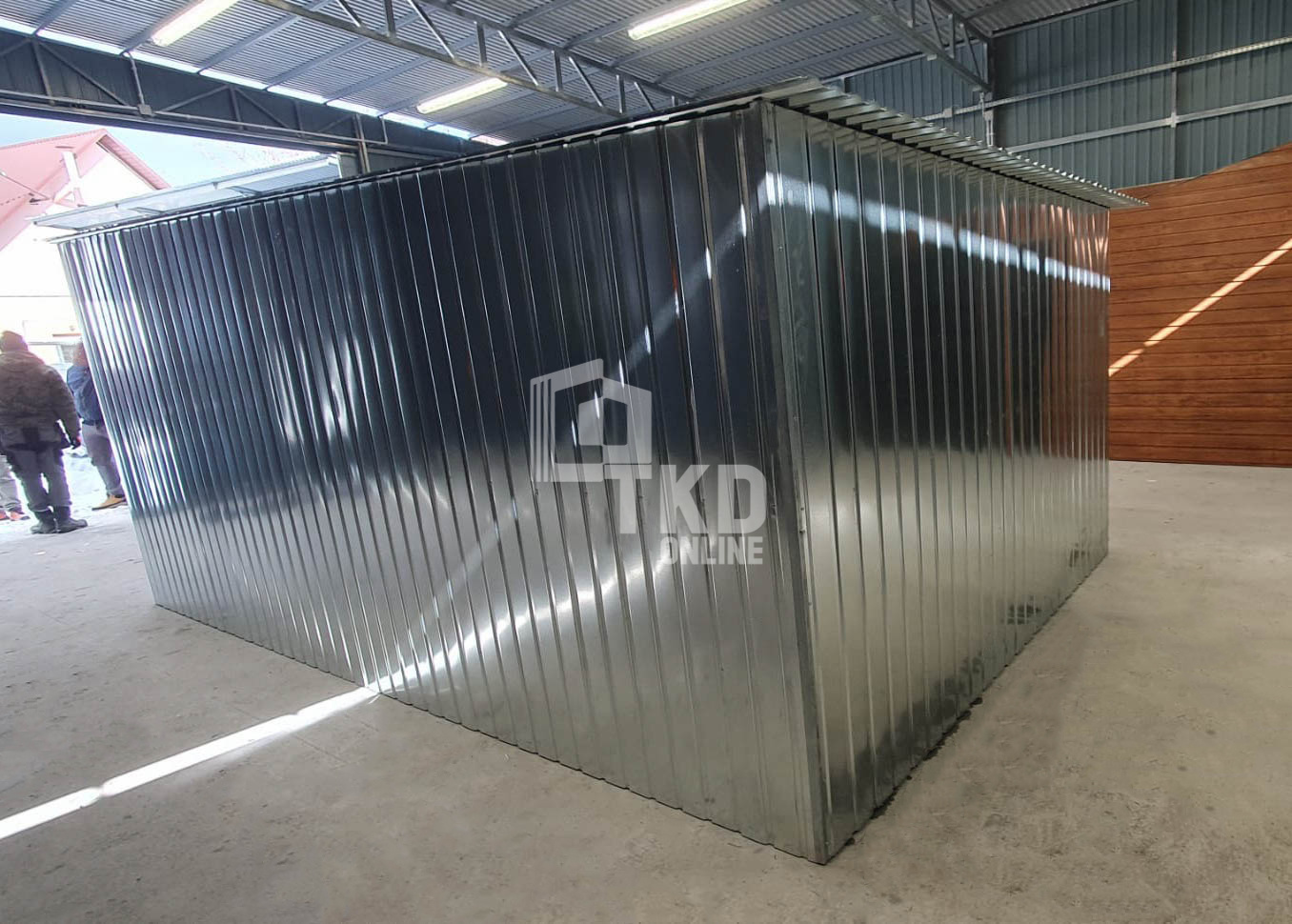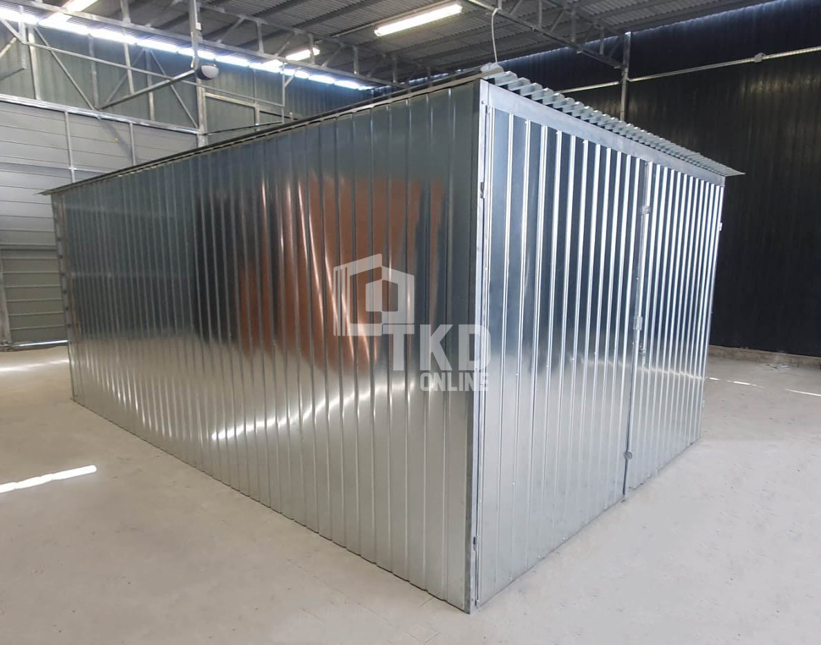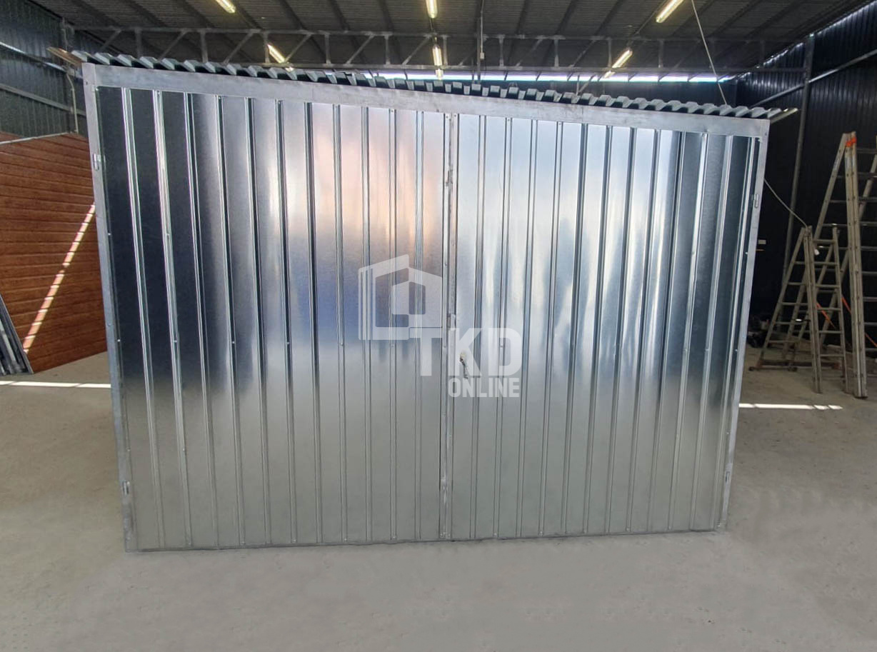Garaż blaszany 3x5m – brama dwuskrzydłowa – ocynk – dach spad w tył TKD385