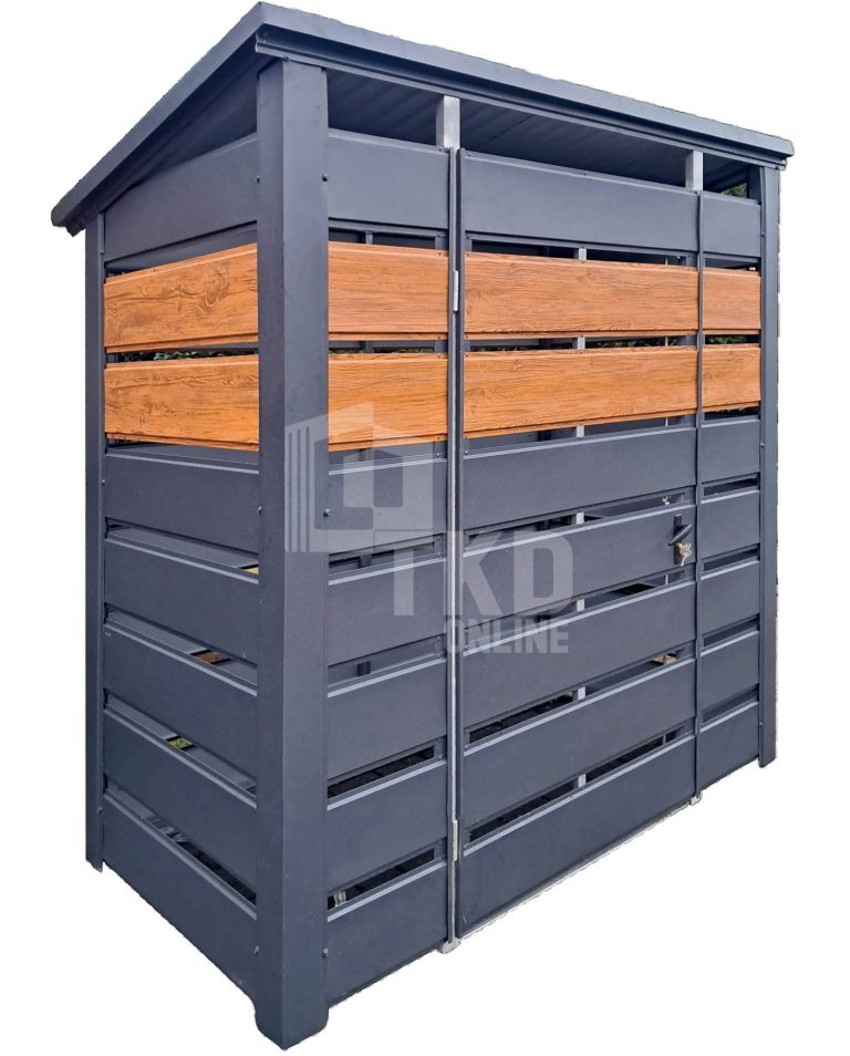 Wiata śmietnikowa 1,6×0,8m Antracyt + jasny orzech Schowek ogrodowy TKD395