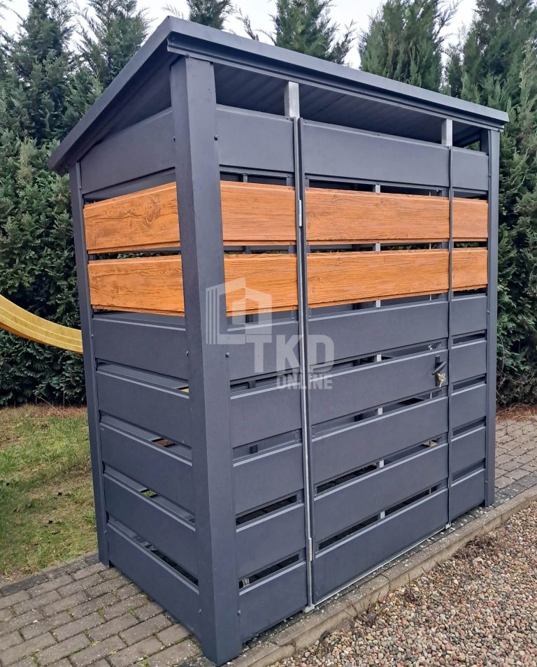 / Wiata śmietnikowa 1,6×0,8m Antracyt + jasny orzech Schowek ogrodowy TKD395
