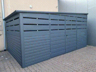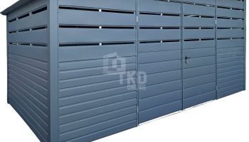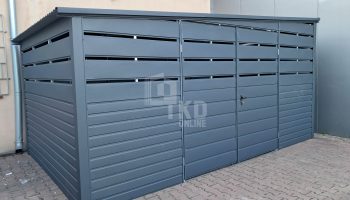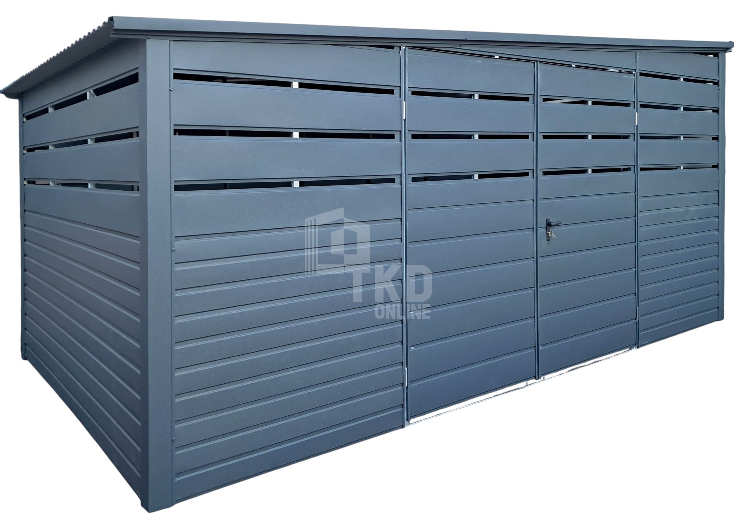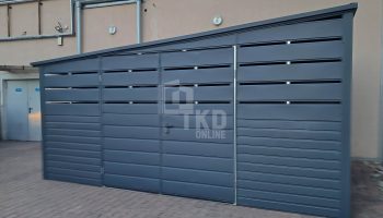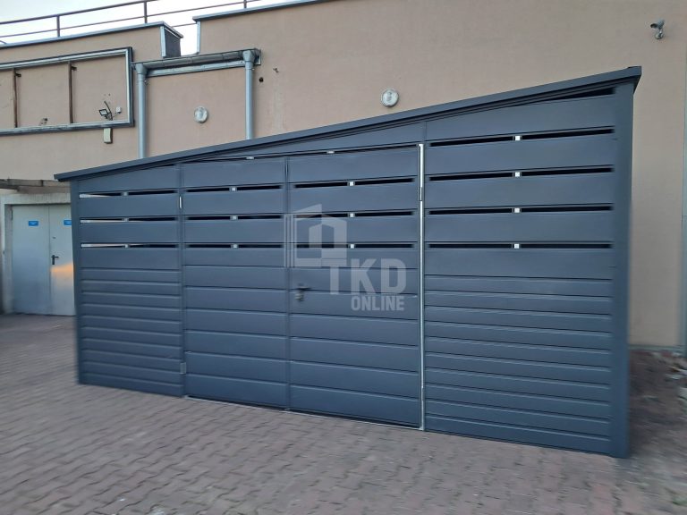 Wiata śmietnikowa – Schowek 4,5x2m – brama dwuskrzydłowa – Antracyt – dach spad w bok TKD393