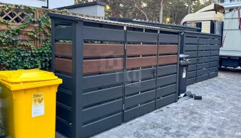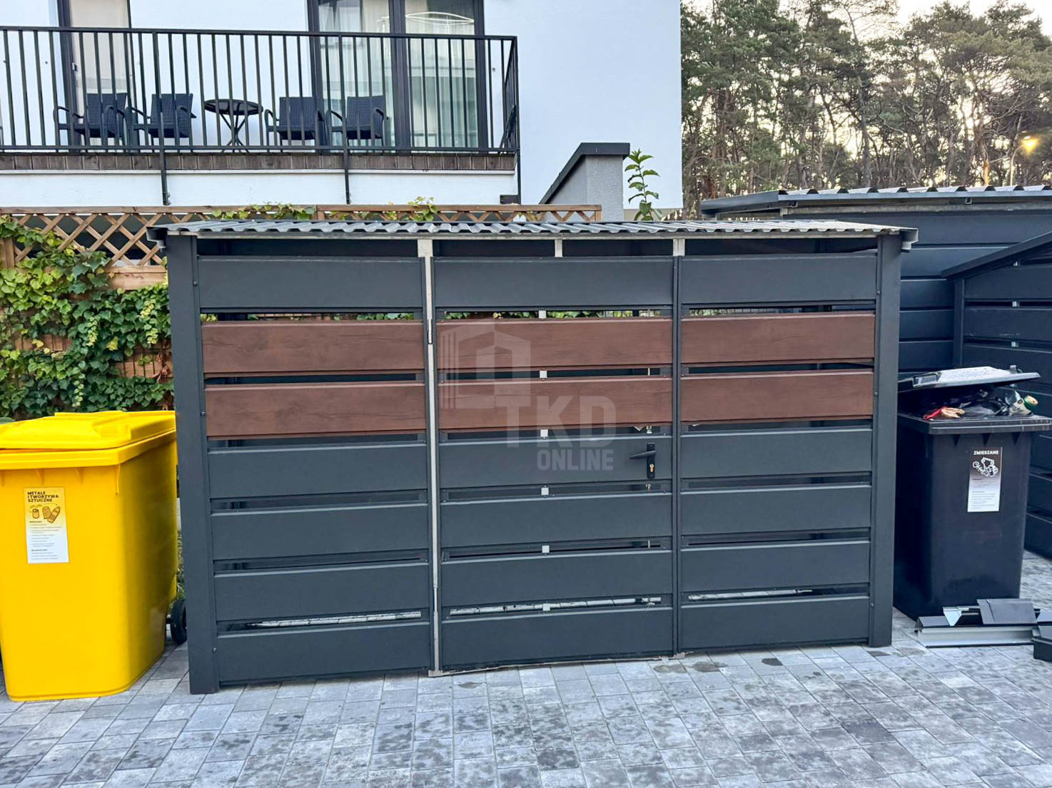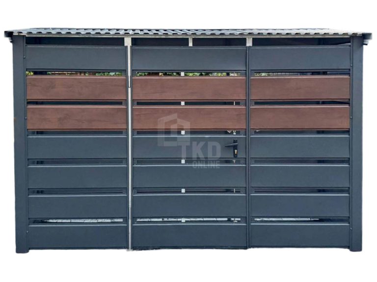 / Wiata śmietnikowa 3x1m – furtka – ciemny orzech – antracyt – drewnopodobny – dach spad w przód TKD441
