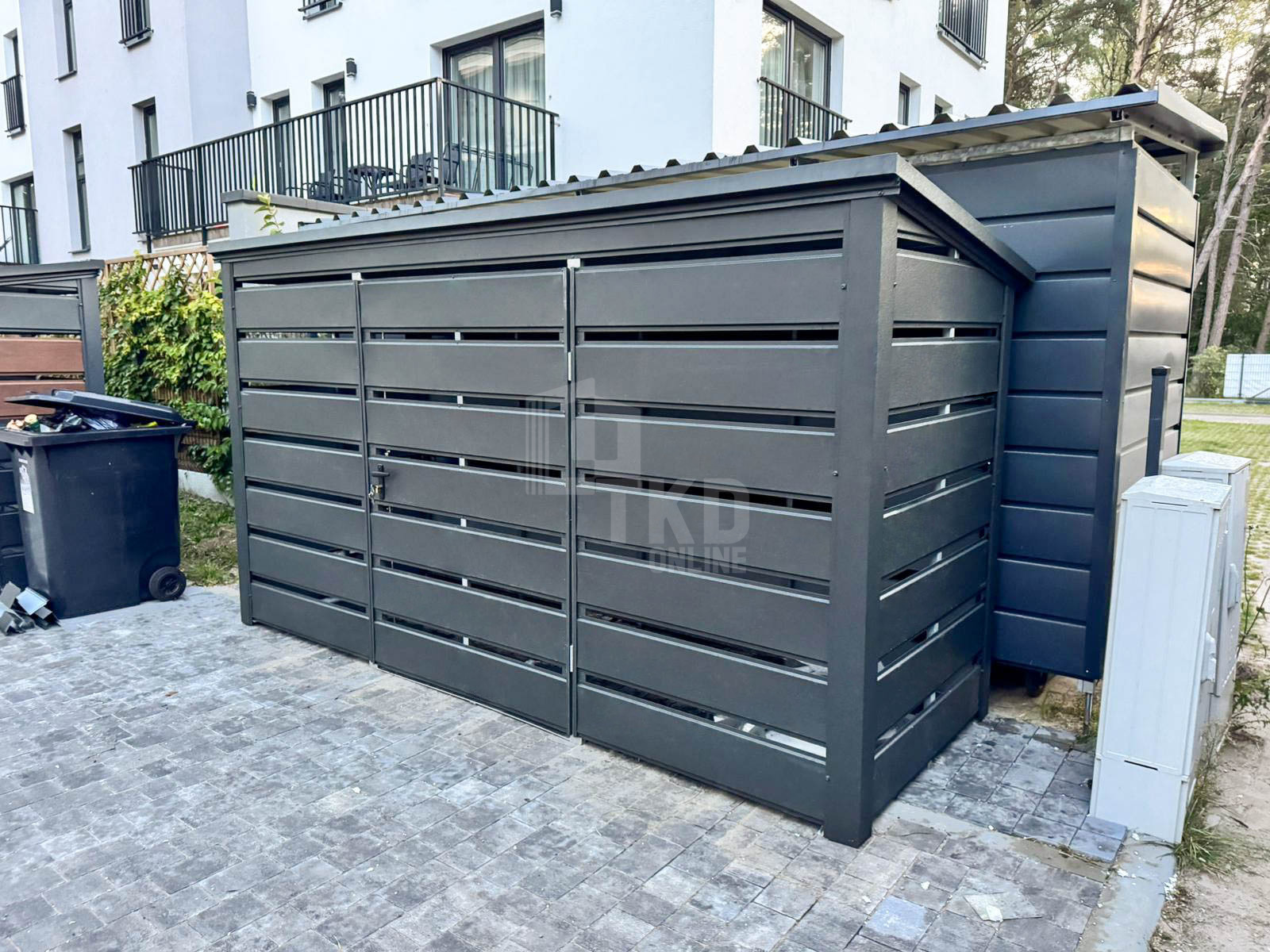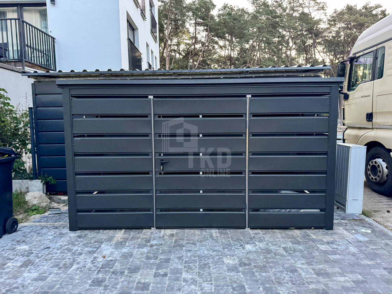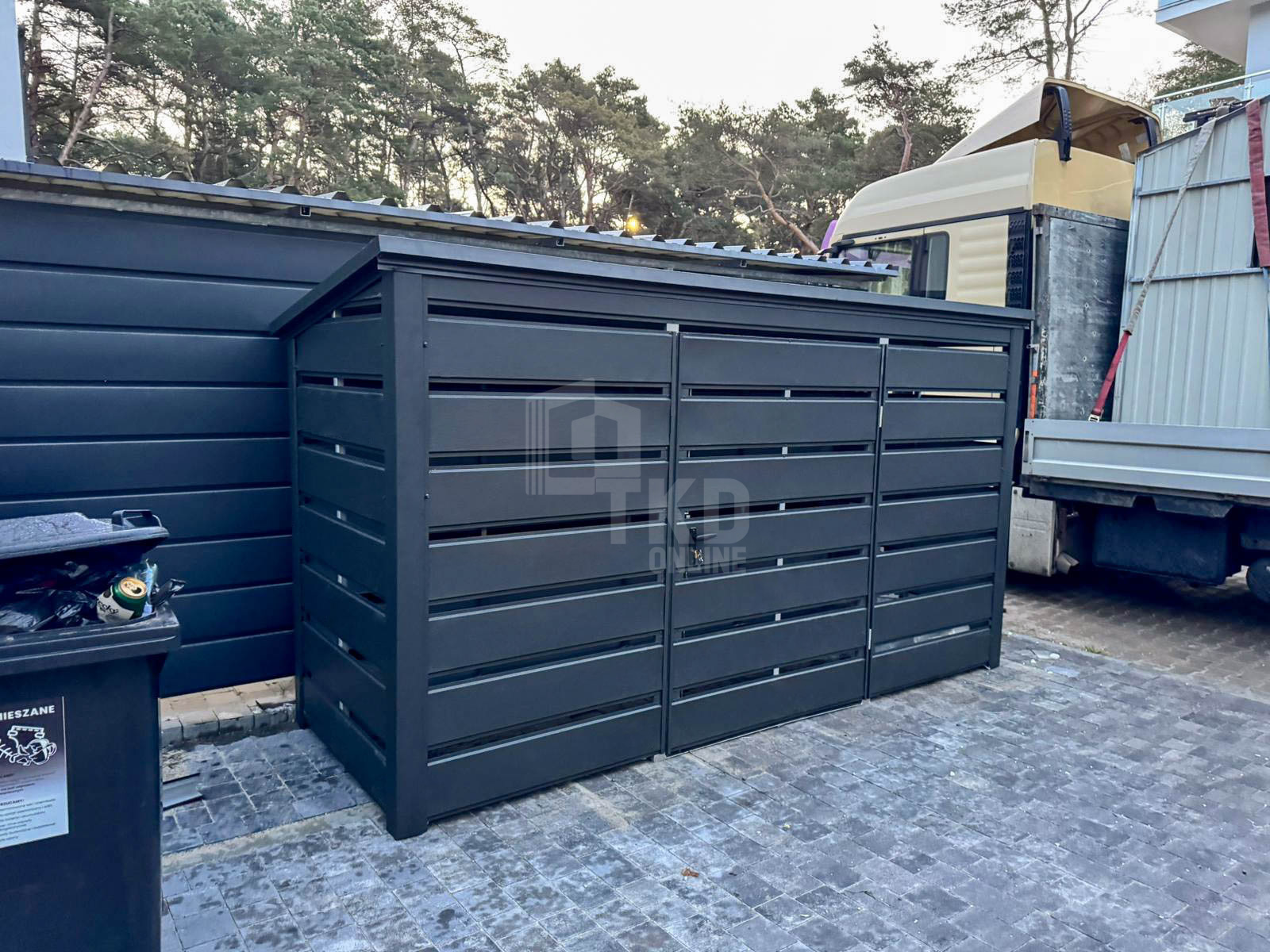 Wiata śmietnikowa – schowek 3x1m – antracyt – dach spad w tył TKD439