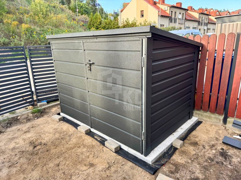 Garaż Blaszany 3,5×5 Brama – drzwi – Antracyt – dach spad w bok TKD80