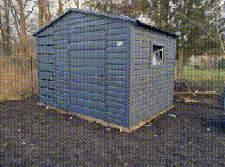• wiata : 0,8×2 m w pełni zabudowana ściana panelami kolor: antracyt mat 7016