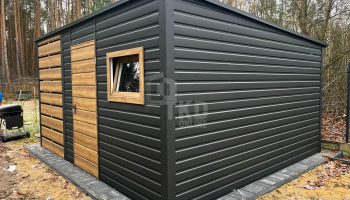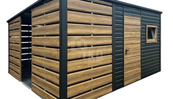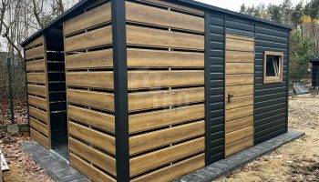 wiata 1,5x3m zabudowana panelami od strony przedniej, tylnej i bocznej z wejściem kolor : winchester