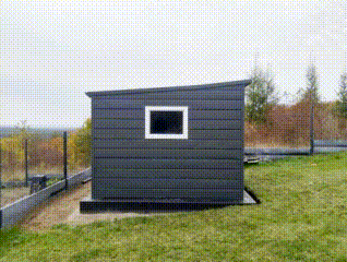 SCHOWEK – DOMEK OGRODOWY 3m x 3m – spad w tył – antracyt Brama + okno TKD128