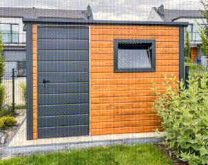 Schowek – domek ogrodowy 3×2,5m Drzwi – okno – jasny orzech – antracyt – dach spad w tył TKD273