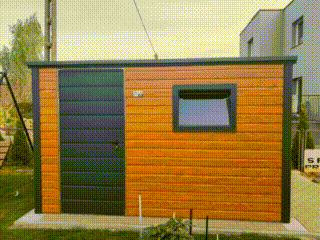 • szerokość : 3m • długość : 2m • dach : spad w tył kolor : antracyt mat 7016 • drzwi 90 cm przetłoczenie T17 kolor : antracyt mat 7016 • okno uchylne PCV 80x60cm • Przetłoczenie ścian T7 poziom kolor : jasny orzech • wysokość ścian z przodu : 214 cm • wysokość ścian z tyłu : 190 cm • Konstrukcja z profili zamkniętych mix 30×30 30×50 40×60 + kątownik 40×40 • Zamek + Klucze • nity + wkręty w kolorze garażu
