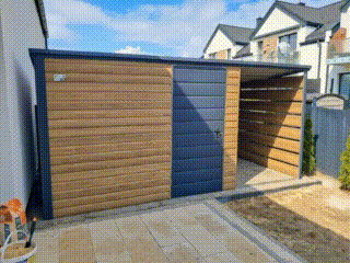 • wiata : 1,5×2 m zabudowana boczna i tylna ściana panelami kolor:Winchester