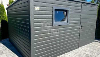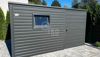 Schowek – domek ogrodowy 3x3m – drzwi – okno – antracyt – dach spad w tył TKD432