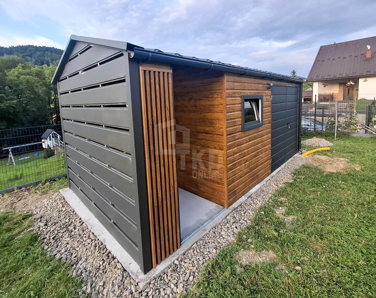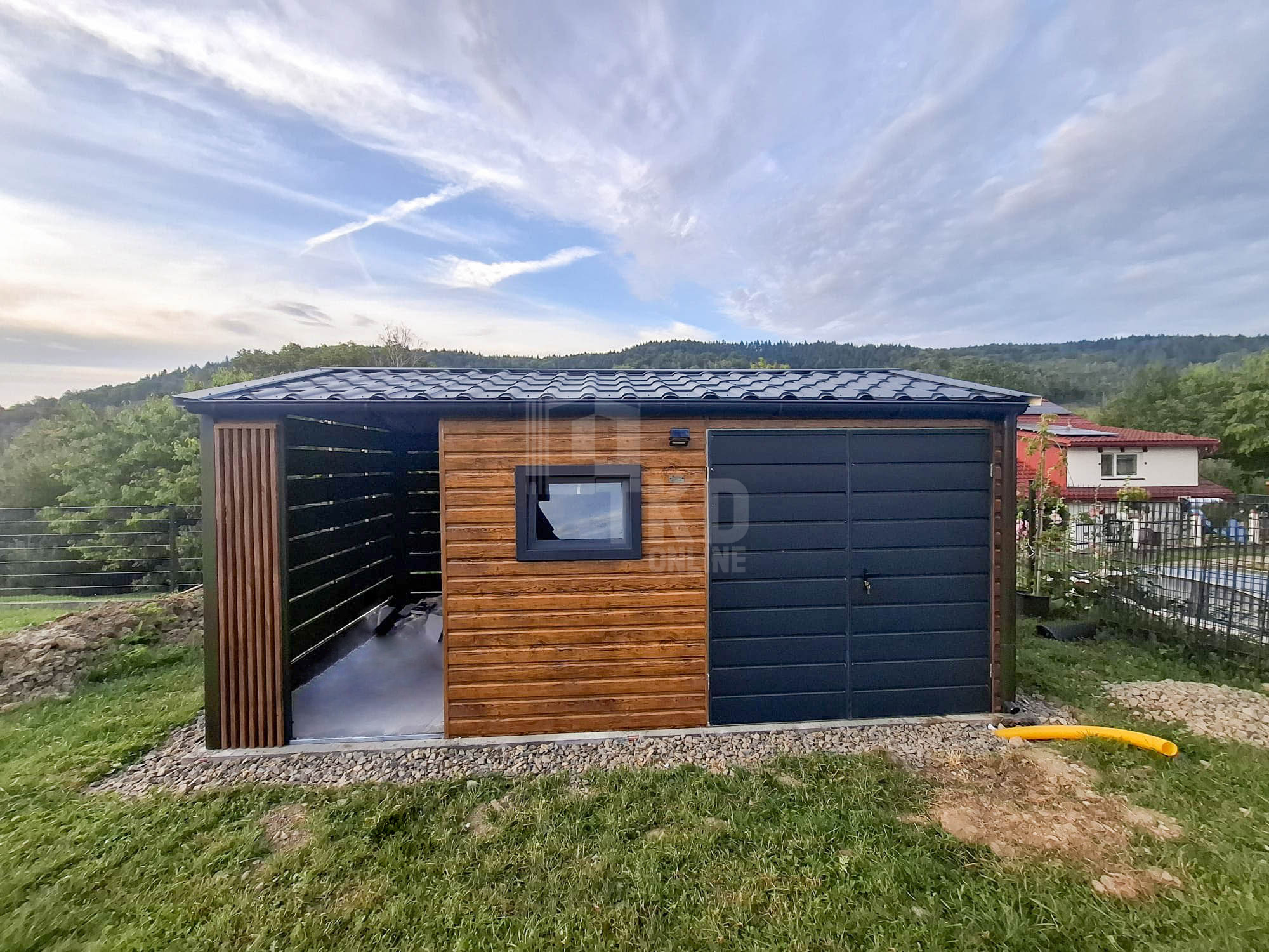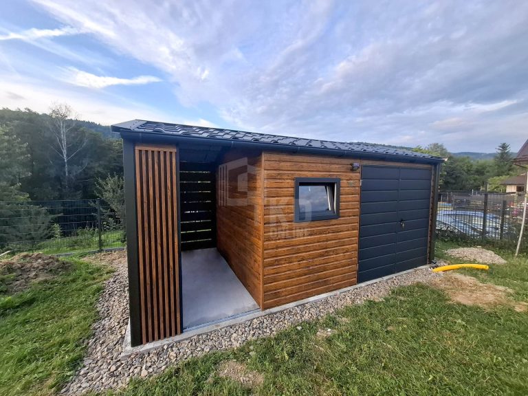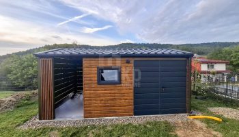 • wiata : 2×2,5 m zabudowana boczna i tylna ściana panelami kolor : antracyt mat 7016