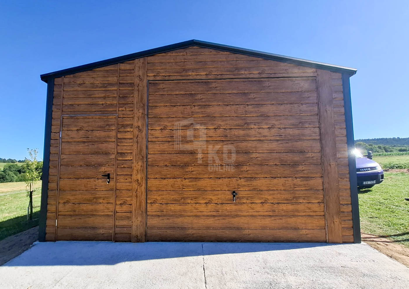 • brama uchylna 300 x 250 cm przetłoczenie poziom T17 kolor : jasny orzech