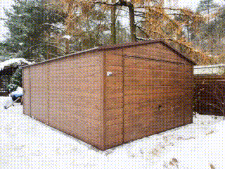 Garaż Blaszany 4×5 Brama – drzwi – ciemny orzech – drewnopodobny – dach dwuspadowy TKD87
