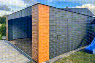 Przetłoczenie ścian T7 poziom kolor Ciemny Grafit Antracyt RAL 7016 + narożniki w kolorze Jasny orzech