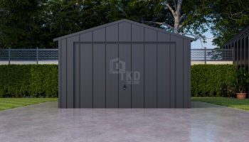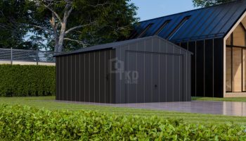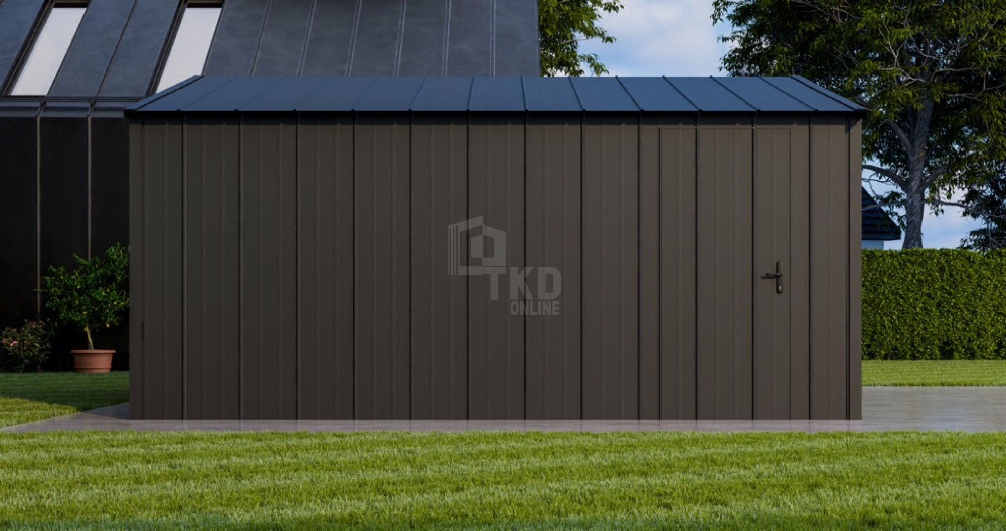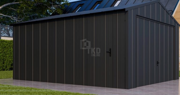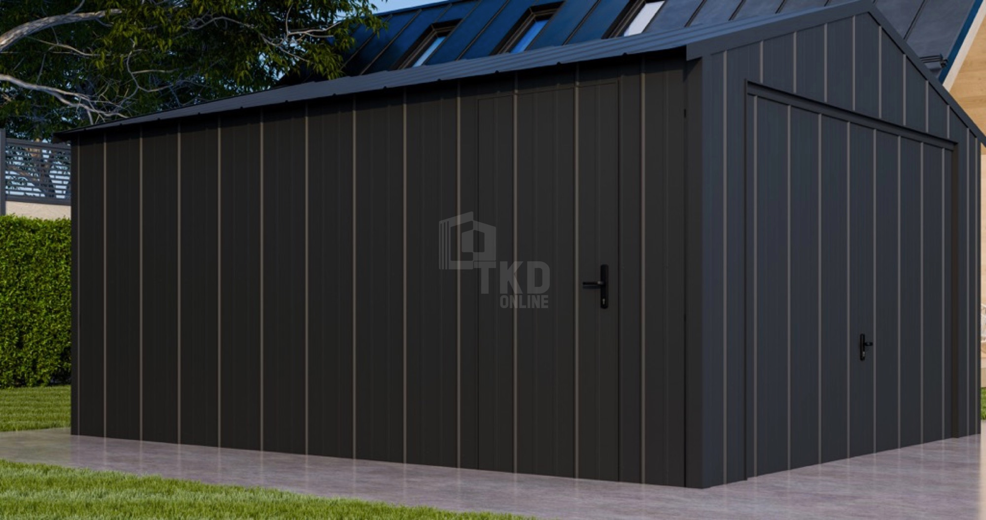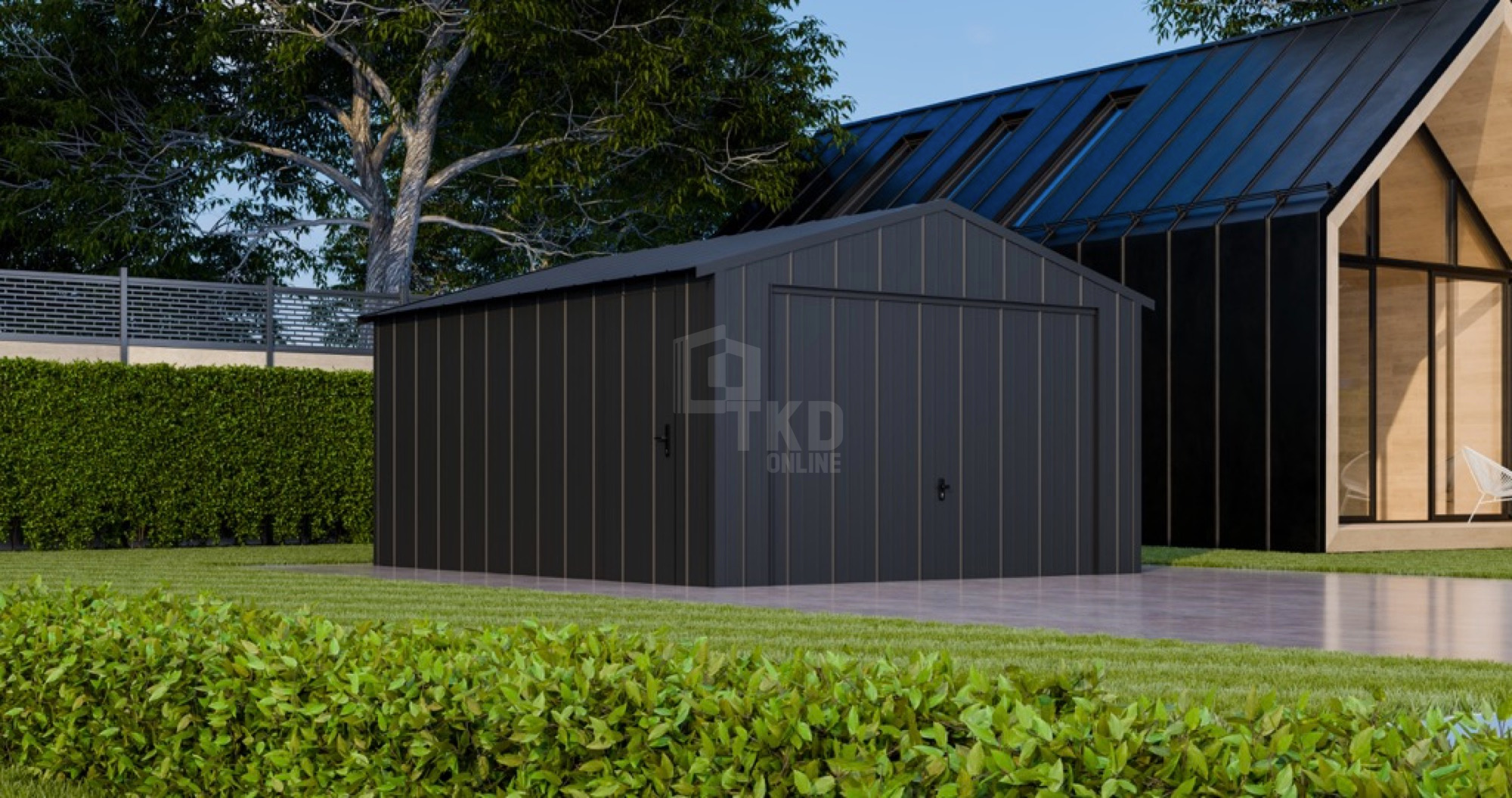 dach: dwuspadowy, pokryty blachą na rąbek, kolor: antracyt mat 7016