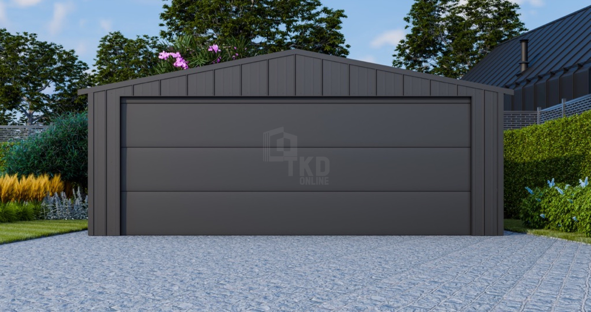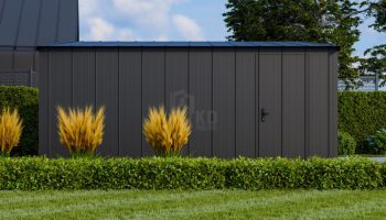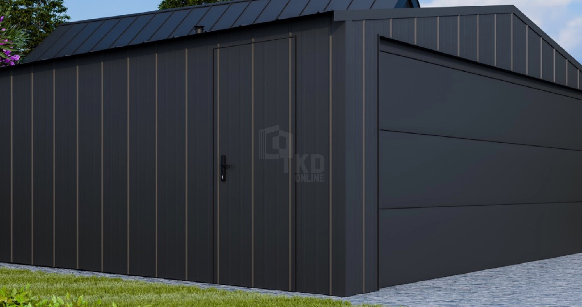 dach: dwuspadowy, pokryty blachą na rąbek, kolor: antracyt mat 7016