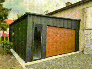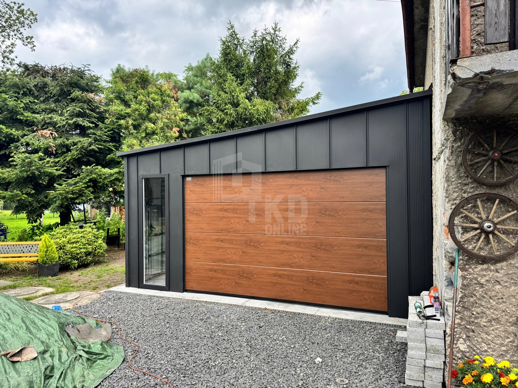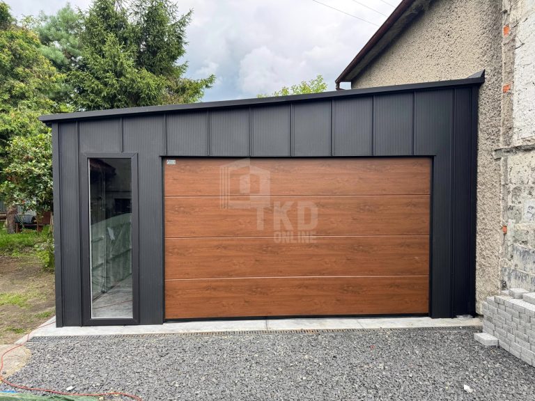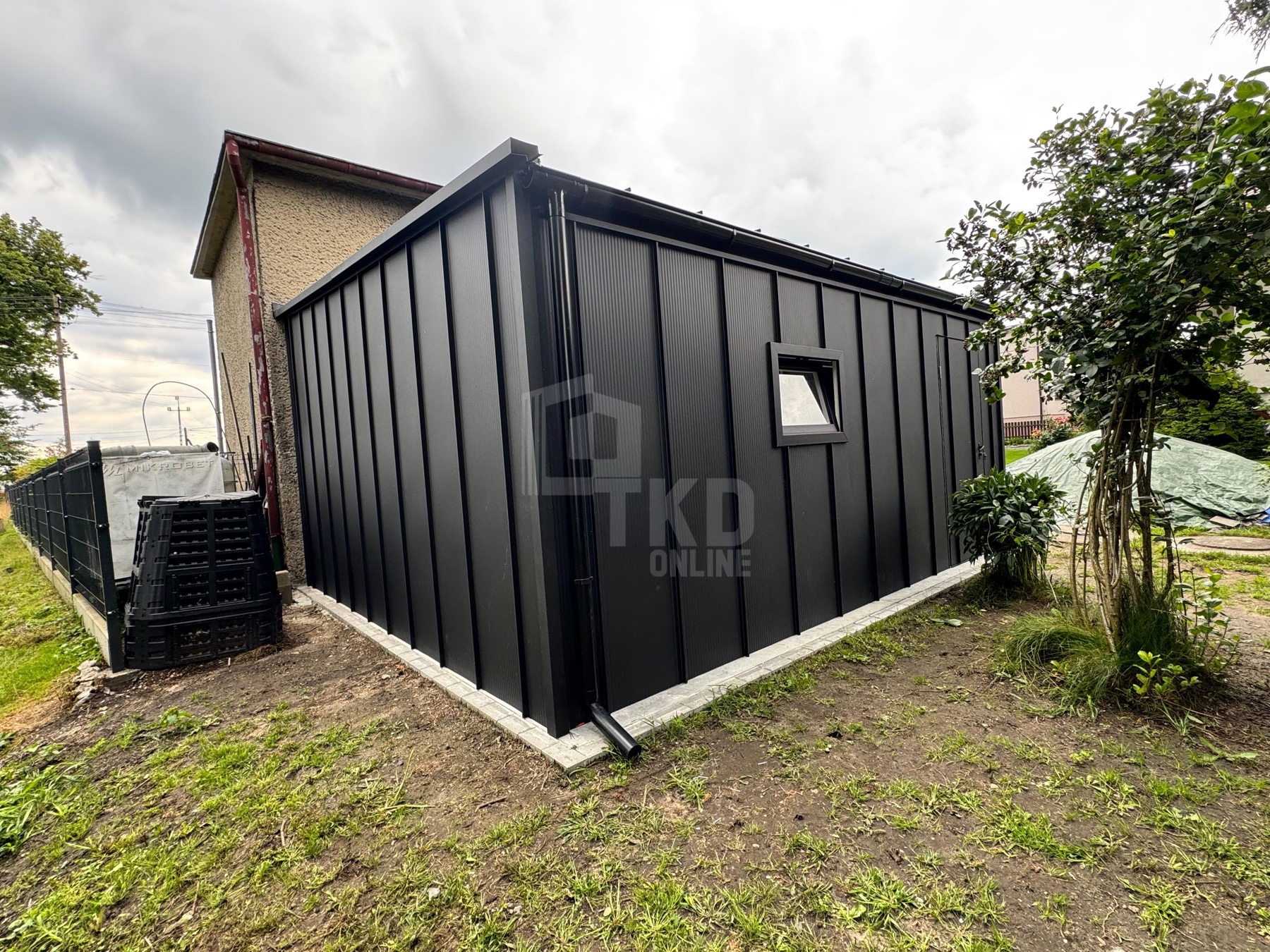 • dach : spad w lewo kolor : czarny blacha na rąbek