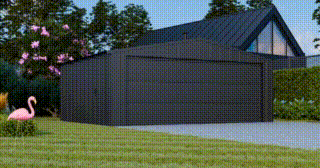 dach: dwuspadowy, pokryty blachą na rąbek, kolor: antracyt mat 7016
