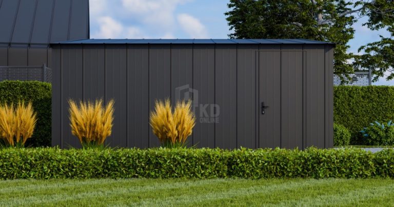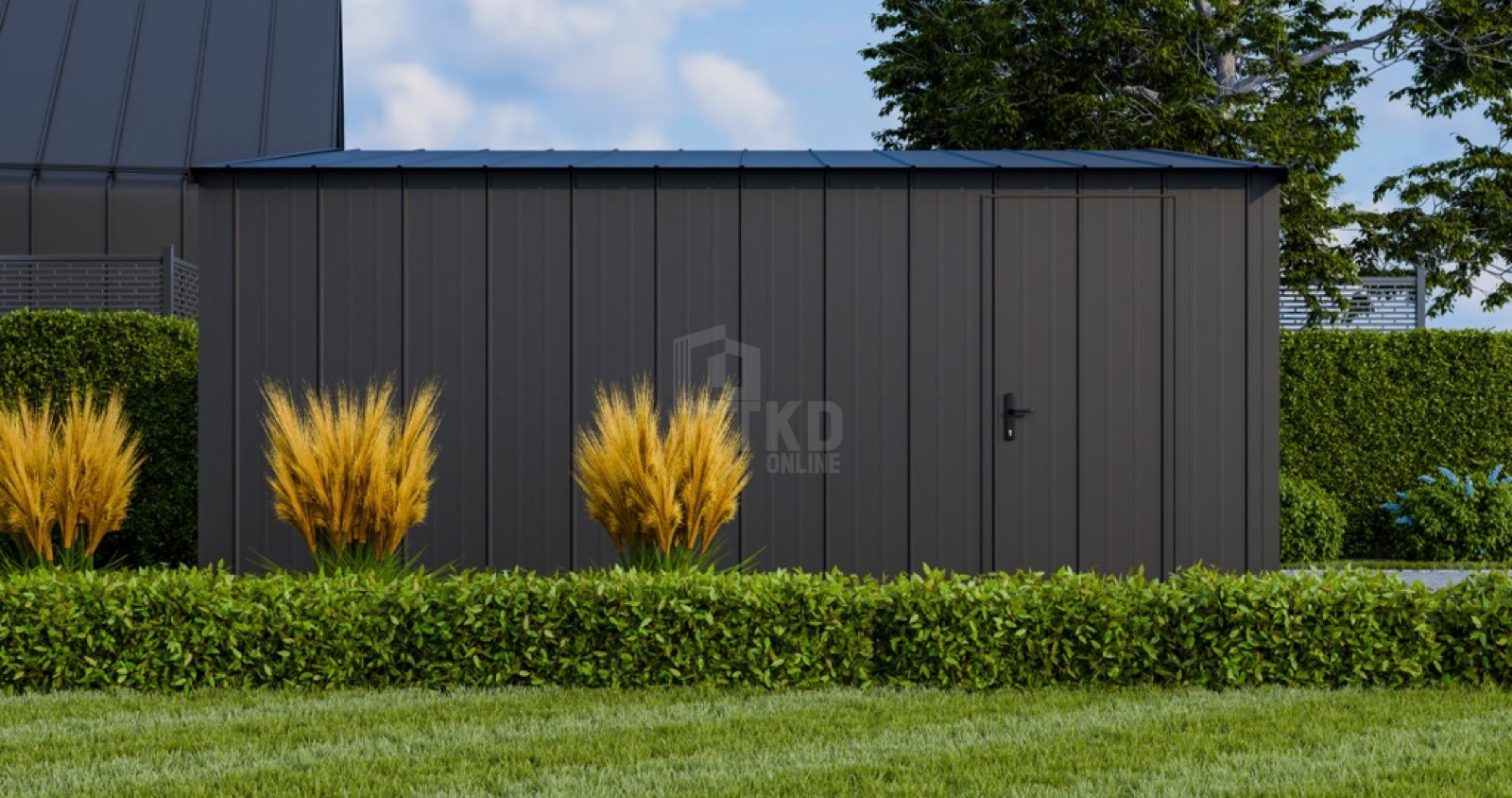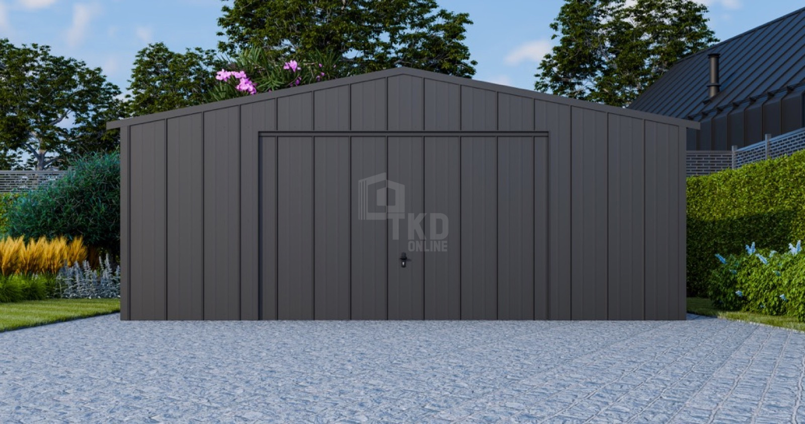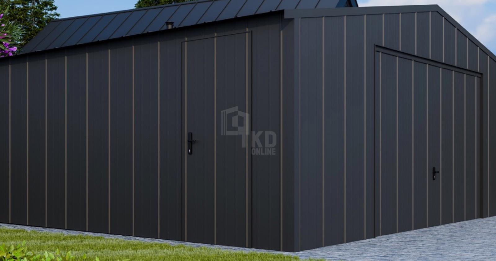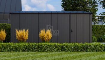 dach: dwuspadowy, pokryty blachą na rąbek, kolor: antracyt mat 7016