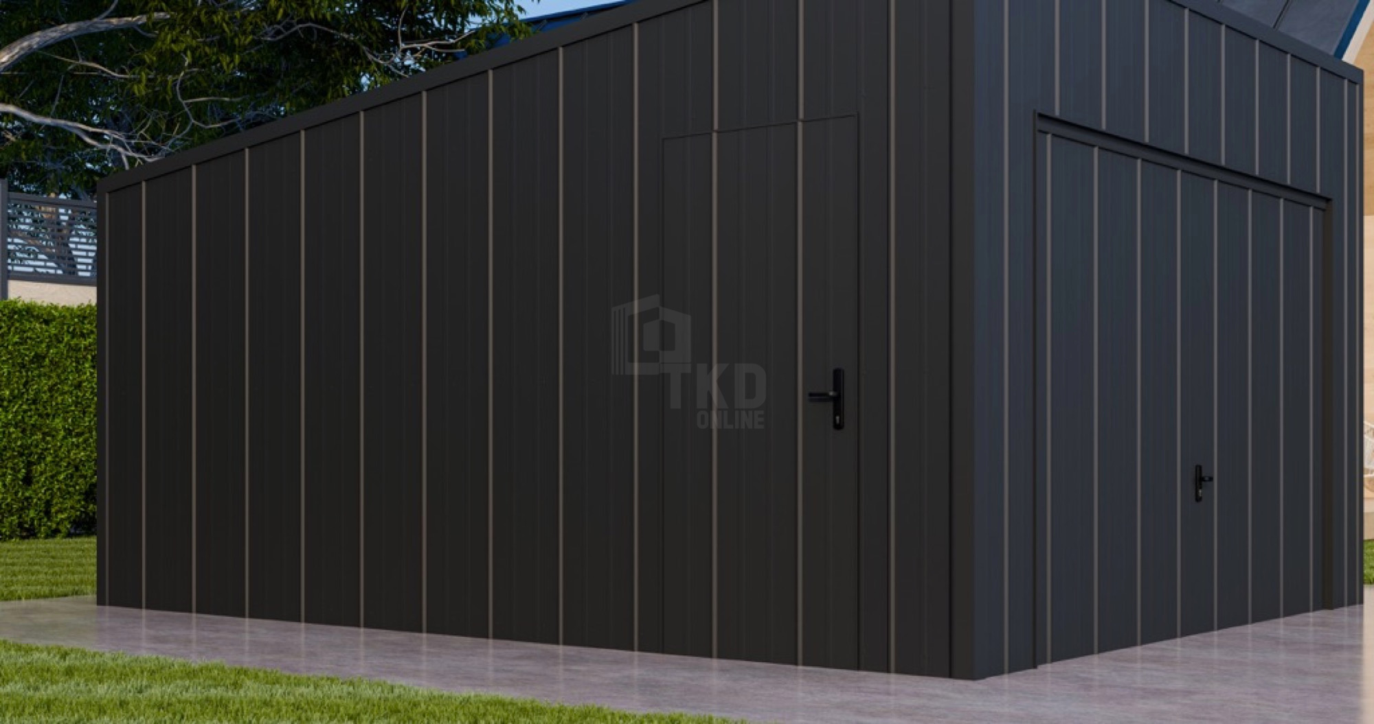 • dach: spad w tył, pokryty blachą na rąbek, kolor: antracyt mat 7016